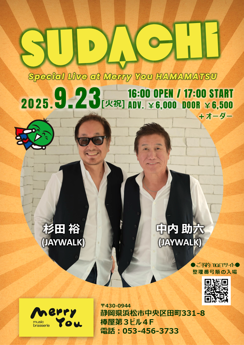 そして、20日が終わると、23日は、SUDACHI 浜松 Merry You公演です。