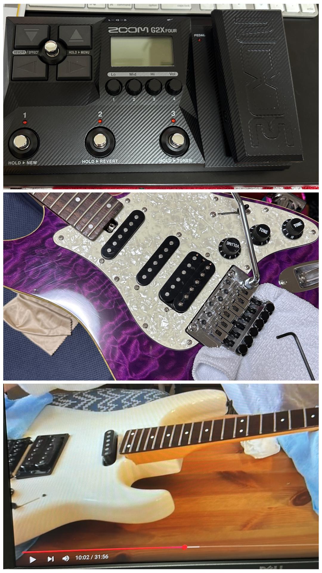 Youtubeを参考にギターの弦を張ってます(ちょっと特殊な構造のギターなので・・・)