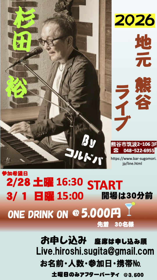 【埼玉・杉田 裕】熊谷地元ライブ SOLO LIVE Day1